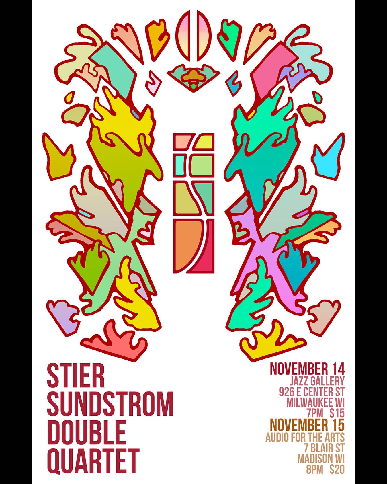 Stier/Sundstrom is an 8-piece improvisational ensemble co-led by bassists Aden Stier and Jack Sundstrom. The group draws its members from Chicago, Madison, and Milwaukee and features some of the top emerging voices in free jazz and experimental music.